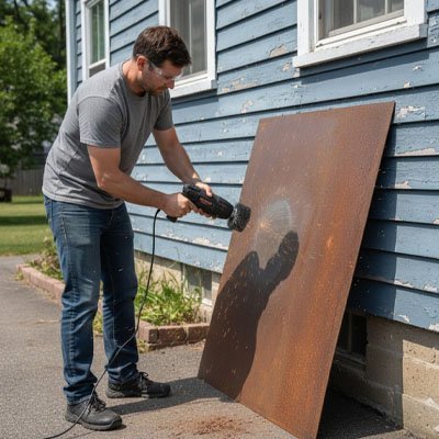 Pour éliminer de la rouille, optez pour une brosse en acier dont la dureté est adaptée à ce type de travail.